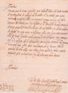 adresse au verso. Précieuse lettre écrite pendant sa détention au château de Niort, après la prise de La Rochelle. Elle fait appel à la courtoisie du maréchal pour qu’il lui procure le moyen de faire venir les hardes qu’elle a laissée à La Rochelle ; (…) Encores que je vous cognoisse pour estre la fleur de toute courtesie si ne voudrois-je abuzer de la vostre si ce n’estoit par une extreme necessité. Mais ne trouvant moyen aucun de faire amener les hardes que j’ay laissées à La Rochelle, je suis contrainte de vous supplier très humblement de me prester un de vos charriots de bagage, en quoy vous m’obligerez plus que je ne saurois dire et ferez paraistre vostre générosité en obligeant une personne qui n’a moyen de le recognoistre par aucun service (…). Ancienne coll. Fatio.