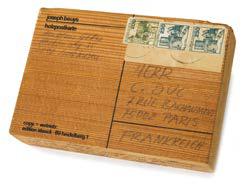 Joseph Beuys. 1921-1986. Artiste. Carte postale en bloc de bois adressée à Herr C. Duc, à Paris. Liverheusen en Allemagne D-5090. "Holzpostkarte" en bois (15 x 10 cm), adresse et timbres.