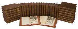 Diderot Denis et Jean le Rond d’alembert. Dictionnaire des sciences. Paris, Desaint et Saillant, 1751-1780 ; 33 vol. in-folio, veau marbré de l’époque, dos à nerfs ornés (un volume, un peu plus petit, présente de légères différences de