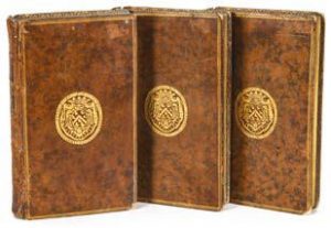 Lussan Marguerite de. Anecdotes de la cour de François I. Londres, Jean Nours, 1748 ; 3 vol. in-12, veau marbré de l’époque, filets dorés, armes au centre des plats, dos lisses ornés, tranches dorées.