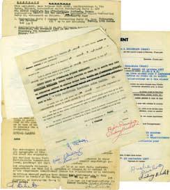 [La Nouvelle-Orléans, 1897 - Garches, 1959], musicien de jazz américain. Ensemble de 3 pièces signées. 2 contrats et 1 engagement pour Sidney Bechet et André Reweliotty, signé par les deux. On joint deux cartes nominatives pour le Salon des Arts ménagers et deux photographies lors de son anniversaire.
