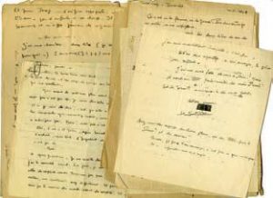 [Saint-Martin de Seignaux, 1925 - Paris, 1948], ami de Boris et Michelle Vian, surnommé « le Major ». Importante correspondance adressée à Michelle et Boris Vian : — 8 dessins de mode signés. — Faire-part du décès de Jacques Loustalot. — Carte de déménagement de Denis Batardière. — 9 cartes postales amicales. — Lettre autographe. Avril 1943 ; 7 pages in- folio. Sur son arrivée à Bordeaux. Il raconte son voyage pour aller à Bordeaux, ses rencontres avec des personnes sur le quai qui lui ont offert plusieurs verres, son arrivée à l’usine où il a été fouillé et humilié. — Lettre autographe signée adressée à Michelle. Avril 1943 ; 4 pages in-folio. « Il est au camp de Corbiac. Mon père, il est “major” (et c’est moi !) du camp. Alors on parle de moi en disant “le fils du Major” ». Il lui raconte « l’incendie qui brûle depuis hier soir dans les forêts de pins — depuis la mer et qui arrive maintenant jusqu’à nous. […] J’aurais envie d’aller par là-bàs, et de danser dans le feu. » Il lui dit sa difficulté à écrire « C’est dur d’écrire et j’ai pas l’habitude. Et c’est peut- être rasoir. Mais tu m’en voudras pas, dis Michelle ? […] Je suis ici comme employé de bureau J’fais pas grand chose, et je mange bien. […] Les Allemands, on les voit pas du tout, mais on les sent pas loin. […] Pour qu’on sorte, du reste, faut des laissez-passer, signés du major du camp. Alors je sors comme je veux, puisque le major, c’est mon papa. » Il termine « Écris lisiblement, je passe des journées à déchiffrer tes lettres. » — Lettre autographe signée. Au camp de Corbiac, avril 1943 ; 12 pages in-4°. Il a été réveillé dans la nuit par un individu qui gesticulait en bas de sa fenêtre. Endormi, il est allé le rencontrer au poste de sécurité. Il s’agissait d’un chauffeur à qui l’on interdisait de sortir du camp, pour aller chercher le médecin qui devait pratiquer des prises de sang obligatoires pour tous dès le lendemain. Un marin se trouvant présent a mal interprété les propos de Loustalot et une altercation intervient. — Lettre autographe signée, adressée à Michelle. Mai 1943 ; 2 pages in-4°. « J’ai le cafard ma Michelle. J’ai le cafard et je bois. Beaucoup trop, je crois. Comment faire ? Le film est magnifique et marrant. […] Ici, avec ces putains de bombardement, on est appellé à perdre toutes ses affaires. Je suis pas mort de celui de l’autre jour, mais s’en est fallu de peu. Te raconterai. Tu m’écris jamais. C’est pas gentil. Moi je vais plus t’écrire, parce que j’en suis maintenant incapable. C’est fini. » — Lettre autographe signée. « Triste camp, dimanche ». Mai 1943 ; 4 pages in-folio. Il raconte un dimanche passé au camp. Il se rend chez une femme pour une panne électrique. « Et avant que j’ai pu intervenir, notre Major a sur lui une drôlesse ricanante et édentée, une furie echevelée et puante, qui lui tremblote à l’oreille des mots sans suite — impossibles à répéter ici. » — Lettre autographe, adressée à Michelle. Juin 1943 ; 2 pages in-4°. « Seul, je suis tout seul […]. Je suis garde-magasin à Corbiac. […] Mais je m’enmerde. C’est le cafard qui fait ça. Y a rien à faire. J’ai même pas le courage d’écrire. Il a fallu que je boive — il y a dix minutes — un grand verre de eau- de-vie […]. Et je couche dans le magasin, une grande bâtisse de xoisante mètres de long. J’ai ma chambre au bout. L’emmerdant, c’est qu’il y a des puces et des punaises. Remarque que je m’en fous, elles viennent pas sur moi. » Il lui soumet une recette pour chasser les morpions, puis « Je me souviens vous devoir du fric. Je t’enverrai çà à la fin de juin. Je touche 2 500 par mois, et j’ai déjà plus de rond. C’est tout bu. C’est honteux ma Michelle ? J’ai pas autre chose à faire. » — Lettre autographe signée, adressée à Michelle. Septembre 1943 ; 4 pages in-8°. « Je suis dégouté, absolument dégouté. Ces derniers jours, deux choses certaines : j’ai décidé de tuer un homme (comment ? je ne sais pas encore ) […]. 1 000 bonhommes doivent arriver à la fin du mois. […] Quant à l’homme que je vais tuer, j’ai pris cette décision de sang froid (car je ne bois plus) et je sens que je ne serais tranquille que quand il sera mort. » Les Americains sont venus bombarder le camp mais les bombes sont tombées à côté. « Ce main, avec un peu de soleil, j’ai tourné une bobine que je t’envoie en même temps que cette lettre. Fais-la développer le plus rapidement possible, tu seras bien gentille. Dis à Boris qu’il se procure sans faute et le plus vite possible des films vierges […] Je vais croûter — j’ai faim. Je t’aime bien. Jacques. Bizobizon. » — Lettre autographe signée. [Mai 1944] ; 4 pages in-4°. « Je m’amuse bien — une vraie rigolade — quelques appareils sautent, des gars se retrouvent en caleçons, quelques morts graves de temps en temps et le Major sur ses pieds — Vive le Major ! ». On joint 12 lettres autographes signées ou non adressées à Michelle et Boris Vian. Correspondance amicale adressée à son retour du camp de Corbiac. On joint une biographie manuscrite signée de Michelle Vian : Jacques Loustalot, fils de Marcel Loustalot, maire et notable de Saint Martin de Saignaux dans les Landes (qui avait aussi un appartement rue du Bac à Paris) était en désaccord perpétuel avec son père qu’il appelait “ce con de Marcel”. Le père ne s’entendait pas avec la mère qui avait été son infirmière pendant la guerre de 1914 et Jacques adorait sa mère. Il était très gentleman. Il adorait Kipling, parlait bien anglais sans être bon élève, était borgne et portait un oeil de verre. À la suite d’un accident, peut-être en voulant démonte une arme, il laissait penser parfois par romantisme, qu’il avait fait, enfant, une tentative