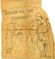 Dessin autographe signé, dédicacé à Michelle Vian. « Vendredi 28 décembre 51 » ; 1 page in-4°, sur morceau de nappe découpé. En lettres capitales : « Lavender Hill Mob ». Ce dessin fait certainement allusion au film “De l’or en barre” sorti en 1951. Signé en haut à gauche.