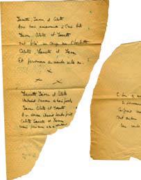 Pièces autographes sur deux morceaux de nappes découpées. [Circa 1952-1954]. — Pièce autographe. Sans date ; sur coin de nappe découpée. « Si tous les maquereaux d’Edmonde [Deferre] Se donnaient la main Ça ferait une ronde Tout autour d’Edmonde Une ronde sans fin. » *Edmonde connue sous le nom d’Edmonde Charles-Roux — Pièce autographe. Publicité pour Gillette. « Yanette, Yassu et Cilette Avec trois amoureux à l’air bête Yassu, Cilette et Yanette On tiré un coup sur l’herbette Cilette, Yanette et Yassu Et personne au monde ne l’a su. Yanette, Yassu et Cilette voulaient l’amour de trois poètes Yassu, Cilette et Yanette a se donner étaient toutes prêtes Cilette, Yanette et Yassu mais personne n’en a voulu. » Au dos figure des notes de J.P. Sartre.