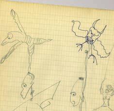 Ensemble de 7 dessins autographes signés, dédicacés à Michelle Vian. 1950-1954 ; 7 pages in-4°, sur son papier quadrillé. Chaque feuillet est dédicacé « à Michelle » et signé par l’écrivain. Ils représentent des portraits caricaturés de son entourage.