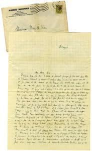 Lettre autographe signée, adressée à Michelle Vian. Ferragosto, [28 août 1972] ; 1 page 1/2 in-4°, enveloppe jointe. « Il n’y a rien, tu dois le savoir à présent puisque je t’ai écrit deux lettres de Florence. Comment y aurait-il quelque chose ; je suis au mieux avec toi et je pense à toi souvent et tendrement. En vérité, mon chéri, c’est toi qui ne me dis guère ce que tu fais. As-tu été à cette réunion de Secours Rouge et qu’en est-il devenu ? Je ne sais qu’une chose (qui ne te concerne pas, il est vrai), c’est l’attaque des occupants yougoslaves par le gars de Citroën qui ont violé deux filles dont une que je connais bien puisqu’elle travaille à la cause du peuple […] À part ça, voici des années que n’avais pas vu un Ferragosto pareil : Rome déserte. Pas une voiture même au parking ou devant l’hôtel. […] L’Italie est inquiète, les journaux se demandent par exemple, s’il y aura des coupures de courant en automne. Depuis dix ans, la consommation d’électricité a doublé et il faut d’ici cinq ans construire de nouvelles centrales. […] Sais- tu que le Giolitti (les glaces) n’a droit à mettre les tables de sa terrasse qu’à partir de 18 heures, c’est te dire que nous l’y allons plus manger de glaces. Hier on a vu Rossanna Rossanda et Kerol pour déjeuner. Tu la connais, elle voulait me demander de parler de Mai 68 devant une télé américaine On a parlé, bien sûr, de Lin Piao. Mais rien d’intéressant n’a été dit de part ni d’autre […]. Je t’écris de ma chambre ou l’ai est redevenu conditionné, tous volets clos, lumière électrique a giorno. Aujourd’hui 15 août, les restaurants sont presque tous fermés. Ceux qui restent (comme le Camparone où nous étions ce matin) sont la proie des Romains qui ne partent pas (très populaires, c’était charmant). Mon chéri, je t’écrirai souvent, ne t’inquiète pas. Je t’aime et t’embrasse de toutes mes forces. J.P. Sartre. »