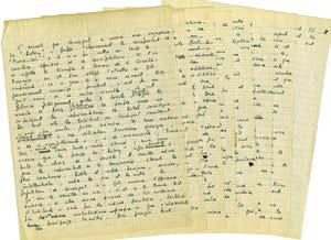 Ensemble de 8 documents divers sur les Temps Modernes : — Important manuscrit « L’accueil deLeningrad ». [1955] ; 7 pages 1/4 in-4°. Article de Sartre sur les échanges entre la Russie et la France : « La visite de MM. Faure et Pinay en URSS est un événement heureux […] S’ils vont là-bas, c’est pour travailler et demander peut-être ce qu’ils peuvent entreprendre, à la veille d’une conférence qui réunira les quatre ministres des affaires étrangères, afin de régler les principaux différends qui séparent les Grandes Puissances. » — 2 lettres dictées par Sartre à Michelle Vian, adressées à Maurice Merleau-Ponty. 28 juin 1953 et 15 juillet 1953, relatives à leurs différends politiques. — Lettre de Paul Charriaud, adressée à Mi- chelle Vian. Paris, le 19 mai 1953 ; 1 page in-4°. Au sujet d’un article paru en 1951 « La ségrégation sans larmes » (sur les statuts différents des hommes et des femmes). — Lettre anonyme, adressée à Jean-Paul Sartre. « Ignoble youpin ». — Lettre de Maurice Merleau-Ponty, adressée à Jean-Paul Sartre [1953] ; 2 pages in-4°. Au sujet d’un article paru dans les Temps Modernes. Suggestions de modifications. — 1 lettre autographe signée de Mario Alicate et 1 pièce autographe au sujet de Jean-Jacques Abrahams.