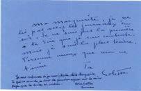 (Sidonie Gabrielle Colette, dite) [Saint-Sauveur-en- Puisaye, 1873 - Paris, 1954], romancière française. Lettre autographe signée, adressée à Marguerite Moreno. Sans date ; 1 page in-8° oblongue. « Je ne suis pas la première à te dire que je suis contente mais je suis la plus tendre. Personne mieux que moi ne t’aime. Ta Colette ».