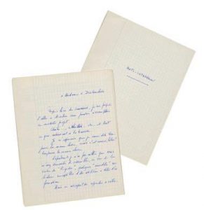 Auto-interview. 22 pages in-12 sur cahier d’écolier précédé d’une lettre ouverte à Madame Destouches datée de janvier 1968 de 3 pages. Dans cet entretien imaginaire, Charles Bonabel reviens sur les souvenirs de Céline à Clichy en abordant de nombreux points pas ou peu connus