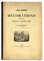 Musée des Antiques. Dessins et gravures de P. BOUILLON ? peintre. Chez H.Nicolle Paris 1810. Grand in-4 relié, dos de chagrin noir avec frottements et manque, plats de percaline noire. Joint BERAIN Jean : Décorations intérieures, style Louis XIV. Librairie d’architecture Bonce Paris . Broché in-4. Soit au total 2 volumes -