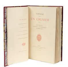 Voyage dans un grenier (bouquins, faïences, auto- graphes et bibelots). Morgand et Fatout Editeurs Paris 1878. E.O. L’un des 500 ex sur Hollande. Jolies gravures hors texte. Reliure in-8 demi maroquin vieux rouge à coins, dos à 5 nerfs, tête dorée, couvertures conser- vées (reliure signée Allô) -