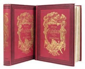 Œuvres de Rabelais. Garnier éditeur Paris 1876. Première édition illustrée par Gustave Doré. Deux volumes in-4. Reliure éditeur pleine percaline rouge, décors sur les plats et les dos, infimes piqures éparses -