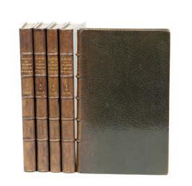 Les amours du chevalier de FAUBLAS. Librairie des bibliophiles Paris 1884. Première édition illustrée par Paul AVRIL. Préface inédite d’Hippolyte FOURNIER. L’un des 20 ex sur Chine, 2ème papier. Bien complet des illustrations en double état. 5 volumes reliés in-12 plein maroquin marron foncé, dos à 5 nerfs légère- ment éclairci, contre plats à encadrement à la rou- lette, trois tranches dorées, couvertures conservées -