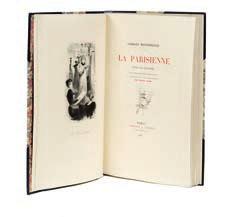 La parisienne peinte par elle-même. Conquet Libraire Paris 1897. E.O. L’un des 150 ex sur Hollande, seul grand papier. Illustrations de Henry SOMM. Reliure in-8 demi chagrin bleu nuit à coins, dos à 5 nerfs, tête dorée, couvertures conservées (reliure signée Bichon)