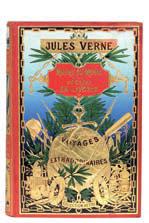 Les Voyages Extraordinaires. Illustré de 172 vignettes par Riou. Gravées par Pannemaker. Paris, Bibliothèque d’Éducation et de Récréation J. Hetzel et Cie, 1888. 624 pp. Catalogue EL pour 1889. Relieur Lenègre. Imprimeur Gauthier-Villars. Cartonnage Hetzel rouge à la bannière bleue. 7ème type : 1885-1894 1er plat : mention ‘Collection Hetzel’ en bas de la bannière, cartonnage biseauté. 2ème plat : macaron circulaire sur fond noir. Tranches dorées. Gouttière régulière. Pas de rousseur. Très bon état. Format in-4°. ON joint : Jules Verne de la Terre à la Lune, Bibliothèque d’édu- cation et de récréation Hetzel, reliure pleine percaline rouge et la Jangada, Bibliothèque d’éducation et de récréation Hetzel, reliure pleine percaline rouge. Soit au total 3 volumes -