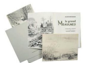 Le grand meaulnes. Editions Vialetay Paris 1965. Première édition illustrée par Gaston BARRET. L’un des 26 ex sur Rives, bien complet de la suite des illustra- tions. Exemplaire signé par l’éditeur et l’artiste et com- plété d’un dessin dédicacé au crayon de Gaston BARRET. En feuilles in-4 sous chemise étui -