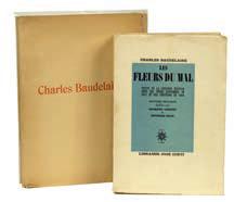 de ou sur Charles BAUDELAIRE : Les fleurs du mal. Librairie Corti Paris 1942. L’un des 100 ex sur alfa. Envoi du préfacier Jacques CREPET à Madame Ronald DAVIS. Broché in-8, petits frottements/ Premier texte des 7 vieillards et 3 lettres inédites. Société Nimoise des amis des livres 1928. E.O L’un des 135 ex sur vélin, seul tirage. Bien complet du frontispice. Plaquette in-8, petites rousseurs éparses/ GAUTIER Féli : Charles Baudelaire. Editions de la plume Paris 1903. E.O. L’un des ex numérotés. Broché in-8, couverture jaunie et feuillets volants. Soit au total 3 volumes -