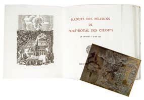 Manuel des pèlerins de Port-Royal des Champs. Société Bibliophilique de Saint-Eloi Paris 1975. L’un des 115 ex sur Arches. Exemplaire complété de la suite des illustrations de DECARIS en deux états, l’un sur papier d’Auvergne et l’autre sur papier Japon, et de deux cuivres, ainsi que d’une gravure dédicacé par l’artiste. En feuilles in-8 sous chemise étui, petite tache sur le dos de l’étui -