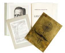 Lieux-dits. Société Bibliophilique de Saint-Eloi Paris 1967. L’un des 120 ex sur papier d’Auvergne. Bien complet de la suite des illustrations des différents artistes sur Chine et sur Hollande. Exemplaire complé- té d’un cuivre de TREMOIS, d’une gravure dédicacée par DECARIS, une gravure dédicacée par Maxime JUAN et d’un dessin de Jean-Pierre BLANCHET, et d’un dessin de Maxime JUAN. En feuilles in-8 sous chemise étui -