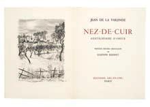 Nez de cuir. Editions Arc-en ciel Paris 1952. Première édition illustrée par Gaston BARRET. L’un des 198 ex sur Vélin. Exemplaire signé par l’illustrateur. En feuilles in-4 sous chemise et étui jauni -
