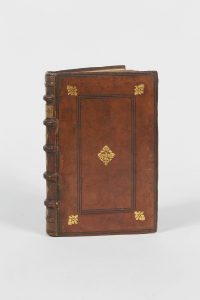 fauve, sur les plats, jeux de filets à froid en encadrement, fleuron doré en angle, aigle bicéphale couronnée au centre, dos à nerfs orné, tranches lisses avec nom de l’auteur en long (reliure de l’époque).