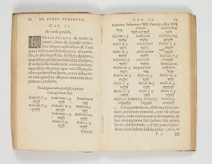 BELLARMINO (R.). Institutiones linguæ hebraicæ… – Exercitatio grammatica in psalmum XXXIII. Secundùm hebræos XXXIIII. Antwerpiae, Ex officina plantiniana, 1596, 2 parties en un vol. petit in-8° de 100 ff. sign. A-M8, N4 (N4 r° : marque des...