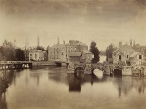 Camille Silvy (1834-1910)Pont des Vendéens sur L’Huisne. Le Mans, c. 1858.Épreuve sur papier albuminé contrecollée sur carton.27,8 x 37,2 cm