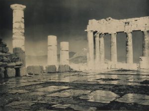 Frédéric Boissonnas (1858-1946) Acropole d’Athènes, c. 1910. Le Parthénon après l’orage. Épreuve argentique d’époque (virage bleuté) contrecollée sur carton, signée à l’encre en bas à droite. 43 x 57,5 cm