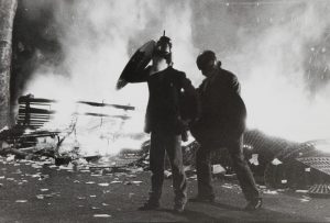 Claude Dityvon (1937-2008)Paris, mai 1968.Manifestants avec leurs casques et boucliers.Épreuve argentique d’époque. Tampon de l’agence Viva et du photographe au verso.17,8 x 23,8 cm avec marges