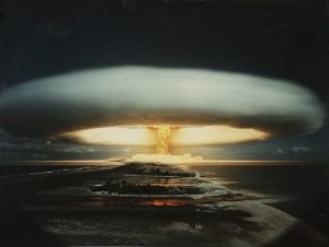 C. E. A. (Commission d’Énergie Atomique - Armée française) Essais nucléaires français dans le Pacifique, Mururoa. Tir Licorne, 3 juillet 1970.Trois épreuves argentiques d’époque en couleurs.Formats : de 12,7 x 8,5 à 17,6 x 23,5 cm