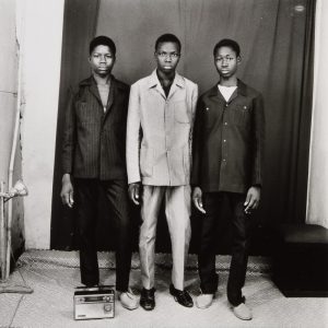 Malick Sidibé (1936) Les trois amis avec poste radio, 1976. Épreuve argentique (2006), signée, titrée, datée dans la marge inférieure. 30,5 x 24 cm avec marges