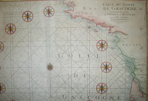 GRANDE CARTE MARINE du Golfe de Gascogne - "CARTE du GOLFE de GASCOGNE contenant les Costes de FRANCE et d'Espagne depuis l'Isle D'OUESSANT jusqu'au CAP de FINISTERE, levée et gravée par Ordre du Roy", par J. NOLIN. XVIIIème. Carte gravée, sur...