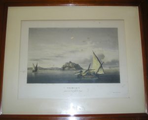 CORSE - "Vue D'AJACCIO, prise de la Chapelle des Grecs" & "VUE DE CALVI, prise à l'Est de la Baye". 2 gravures rehaussées à l'aquarelle par Louis GARNERAY (Paris 1787-1858). Encadrées. (24,5 x 34 au cuivre) - Etat B -