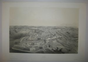 AISNE (02) - VUE AERIENNE de "LAON". c.1853. Lithographie par Noury, sur papier vélin. Imprimée chez Lemercier, à Paris. Publiée à Paris chez A. Hauser, Bd des Italiens, n°11. Planche 6 du "Voyage aérien en France". Marges. (38 x 54) - Etat B -