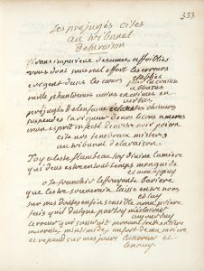 pièces de titre vertes, tranches dorées (Reliure du xviiie siècle). MANUSCRIT AUTOGRAPHE INÉDIT, avec des ratures et corrections, du littérateur, franc-maçon, homme politique et abbé, Pierre Charles Aunillon du Gué. Né en 1685 à Paris d'une famille d'origine anglaise, mort en 1760, il fut nommé à la tête de l'abbaye de Saint-Laurent du Gué de Launay à Vibraye (Sarthe), mais c'est à la littérature, à la vie mondaine et aux aventures amoureuses qu'il voua sa vie. On connaît de nombreux détails sur sa personnalité et sa vie grâce aux rapports de police conservés dans les archives de la Bastille, ainsi que par ses mémoires, publiés en 1808 sous le titre Mémoires de la vie galante, politique et littéraire de l'Abbé Aunillon Delaunay du Gué, ambassadeur de Louis XV. On sait notamment qu'il adhéra, en 1737, à la franc- maçonnerie (loge Coustos-Villeroy, l'une des premières de France) et qu'il fréquenta les actrices du Théâtre français où il fut connu sous le nom d'« abbé de la Comédie ». En 1744, Louis XV le nomma ambassadeur près de l'électeur de Cologne. Il est l'auteur de plusieurs ouvrages, dont Les amants déguisés (1728), Azor ou le Prince enchanté (1750), Lamekis ou les Voyages extraordinaires d'un Égyptien (1787), etc. Les 105 pièces galantes, philosophiques et de circonstance, qui composent ce volume, illustrent sa vie sociale et amoureuse et dressent en même temps le tableau de la société qu'il fréquentait : Voltaire, Gresset, le cardinal de Bernis, le duc de la Force, Madame du Chatelet, Madame du Boccage, Madame Dupin, le cardinal de Fleury, etc. La BnF et la bibliothèque de la Comédie Française conservent des manuscrits de l'abbé Aunillon, certains provenant des bibliothèques de Saint-Beuve et du baron Pichon. Dominique Quéro, éditeur de plusieurs lettres de l'écrivain à l'actrice Adrienne Lecouvreur, à Voltaire et à Madame de Graffigny, souligne que l'étude de ses manuscrits fournirait des matériaux de premier plan sur la vie littéraire du XVIII e