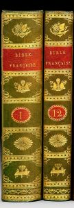 Bible. — La Sainte Bible, contenant l'ancien et le nouveau Testament, traduite en françois sur la Vulgate par Le Maistre de Saci. Paris, Defer de Maisonneuve, de l'Imprimerie de Monsieur [puis : Gay, Ponce, Belin], 1789- an Xii [1804]. 12 volumes...