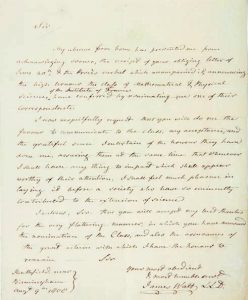 James Watt (1736-1819) ingénieur et physicien écossais. L.A.S., Heathfield près Birmingham 9 août 1808 ; 1 page in-4 ; en anglais (portrait gravé joint).