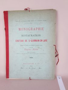 MILLET Eugène. Monographie de la restauration du château de Saint Germain en Laye. Paris, Sylvestre et Cie, vers 1892, grand in folio monté sur onglets. Portfolio cartonné.