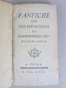 BüNNEVAL Gimat De. Fanfiche ou les mémoire de Mademoiselle de XX . 2 parties en 1 volume, in- 12, 1748. Très bon état.