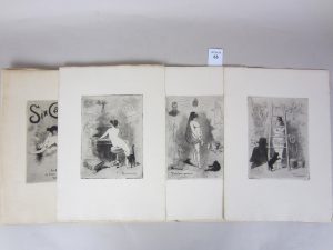 L.JOLY. Port folio de 6 gravures érotiques intitulé 6 caprices. Paris, in-4. Six superbes eaux fortes mettant en scène une femme et un chat noir , ces six gravures anonymes sont de Joseph Appoux , le tirage n'est pas justifié mais doit être...