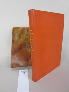 LEBREAU Jean. Images de moux ou la louange du Cyprès. Edition du divan. In-12. Un des 15 sur Madagascar. Lettré O. Reliure de J Van West plein cuir orange. Tranche supérieure dorée.