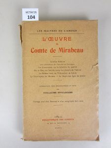 MIRABEAU Comte de. Les maitres de l'amour. Couverture abimé , dos déchiré sur 4 centimètre.