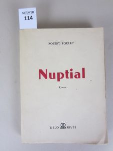 POULET Robert. Nuptial. 1955. Edition des deux rives. Edition courante. In-12. Bon état. Dédicacé à Maurice Nadeau. Broché.