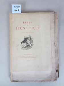 REVES DE JEUNE FILLE. Bruxelles. Edition princeps Elzevir , édition Dentu , 1879 , in-12. Un des 25 non numéroté sur Hollande. À toutes marges , non rogné , couverture souple décoré d'une vignette.
