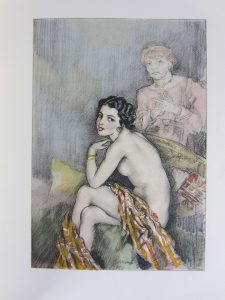 SAMOSATE Lucien de. Les classiques de l'amour, dialogues de courtisanes. Edition Emile Chamontin In-12. Illustré par Chimot .Reliure d'éditeur en cuir souple bleu ciel , ornements dorés sur le premier plat , mors et plat légèrement frottés....