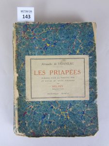 VERINEAU Alexandre de. Les priapées. 1920. Publié par Helpy.( Louis Perceau). In-12. Bon état. N°2/350 imprimé pour Monsieur Robert signé par Louis Perceau , imprimé à érotopolis. Intérieur très frais. Couverture salie et abimée.