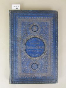 VERNE Jules. Aventure de trois russes et de 3 anglais dans l'Afrique Australe. In-8 Reliure très salie , titre sur le dos illisible , mors frottés, couverture rigide bleue ornée de dorure , dos décollé , brochage lâche. Illustré par Férat...