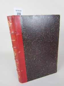 VERNE Jules. De la Terre à la lune , Autour de la Lune. In-8. Demi reliure rouge , plat papier marbré , dos à 4 nerfs frottés, caissons ornés de fleurons, titre et auteur dorés, page de titre déchirée. Contient 41 dessins et une carte de...