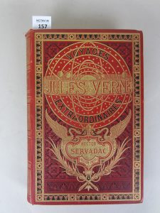 VERNE Jules. Hector Servadac , Voyages et aventures à travers le monde solaire , Paris, J Hetzel, grand in-8. Cartonnage rouge , au monde solaire , très petits accrocs. Catalogue CR annonçant des nouveautés pour 1886. Dessins de P.Phillipoteaux...