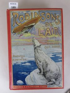 CAPITAINE DANRIT. Robinsons de l'air. Paris, édition Flammarion. Bon état. Illustré par Dutriac nombreuses rousseurs, 3 tranches dorées, reliure signé Engel en percaline rouge, couverture illustrée, 4eme plat taché, décor polychrome sur le...